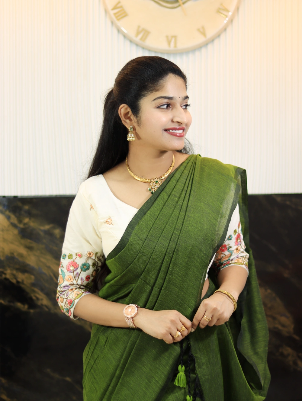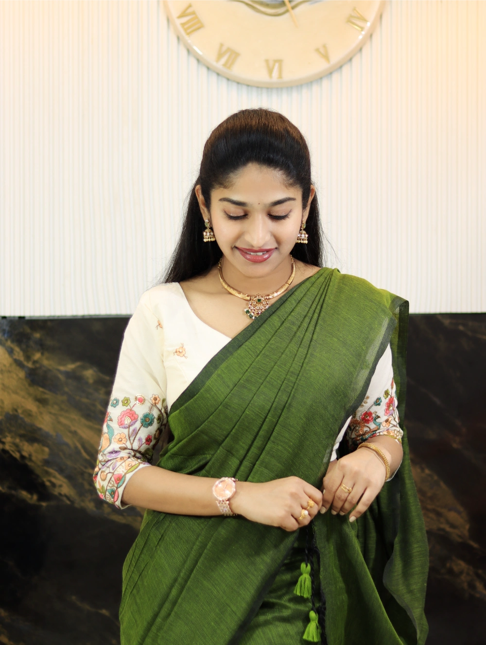 Presenting a timeless blend of tradition and comfort — this Pure Green Handloom Khadi Cotton Saree is a must-have for lovers of breathable elegance. Woven from authentic khadi cotton, the saree offers a soft, lightweight drape ideal for festive wear, office ethnic days, and cultural gatherings.