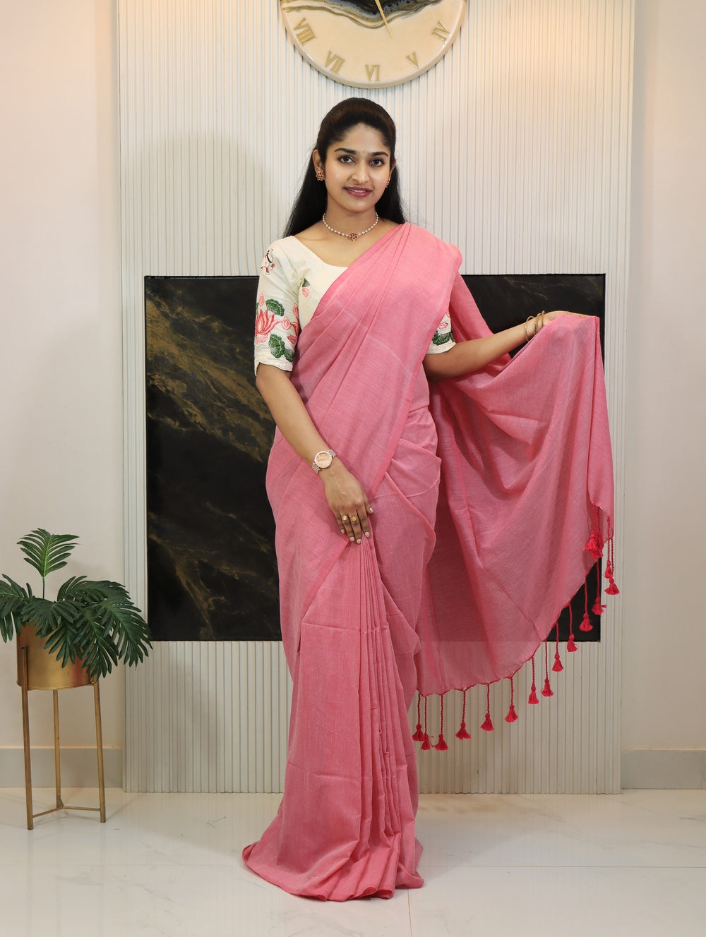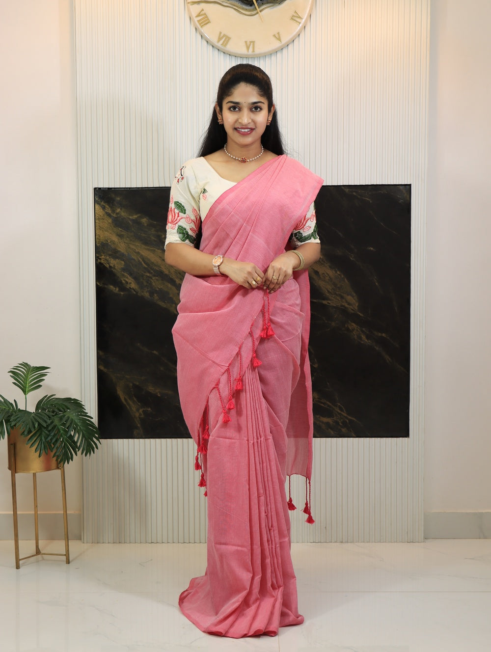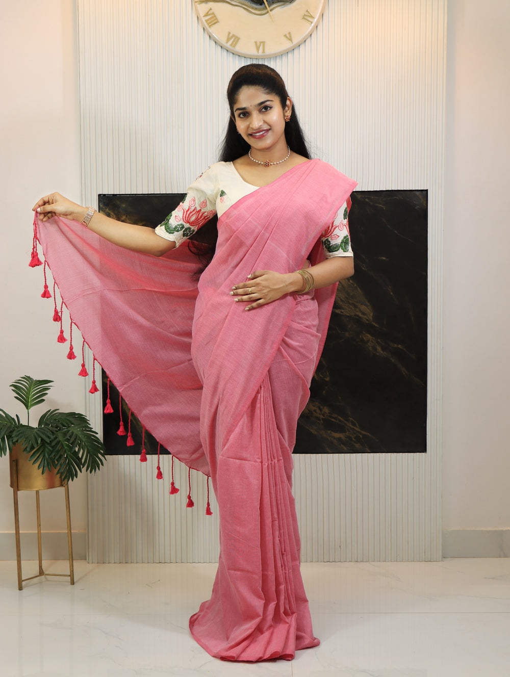 Presenting a timeless blend of tradition and comfort — this Pure Pink Handloom Khadi Cotton Saree is a must-have for lovers of breathable elegance. Woven from authentic khadi cotton, the saree offers a soft, lightweight drape ideal for festive wear, office ethnic days, and cultural gatherings.