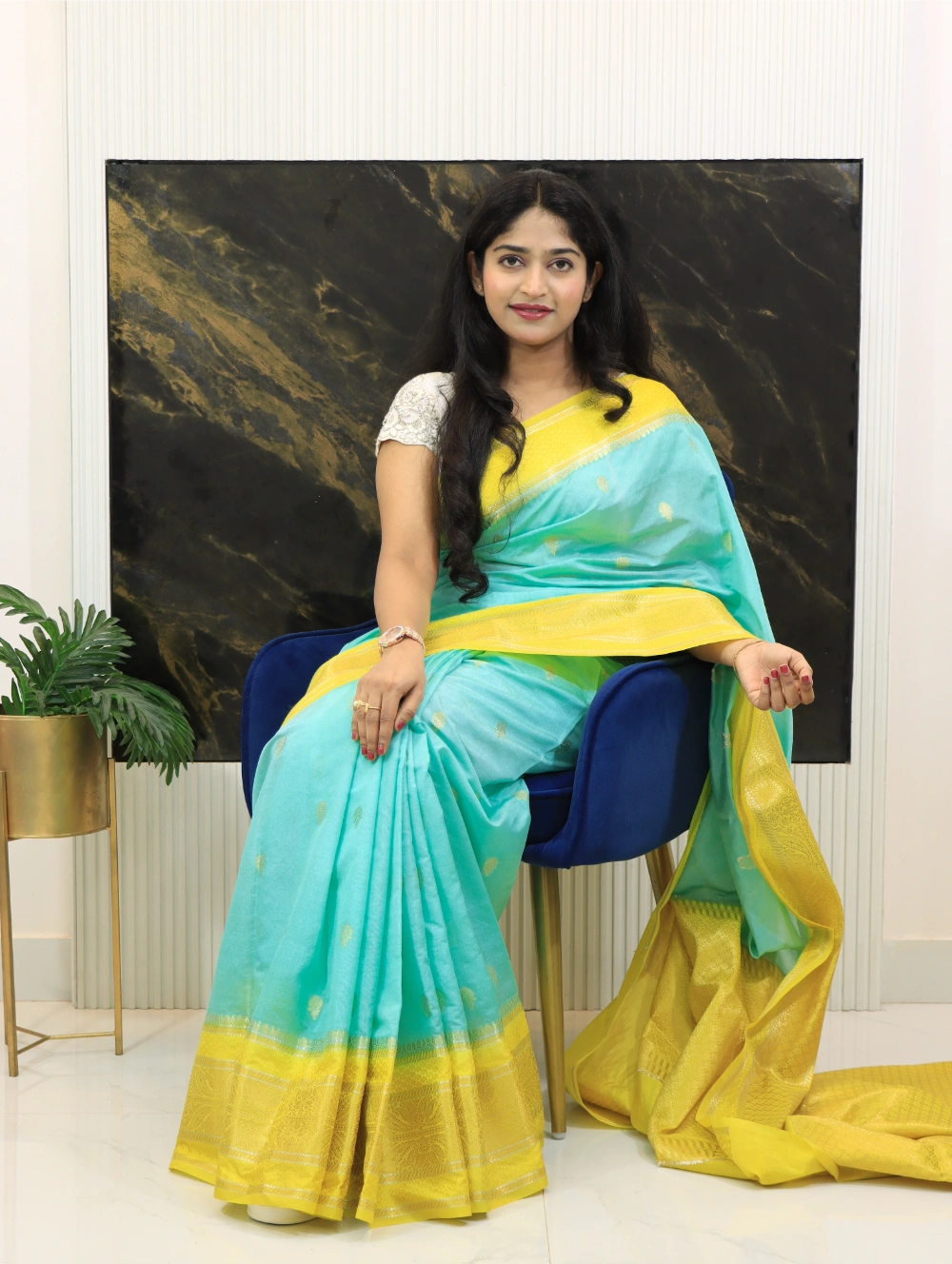 - Fabric: Pure Premium Banarasi Warm Katan Dyble Silk