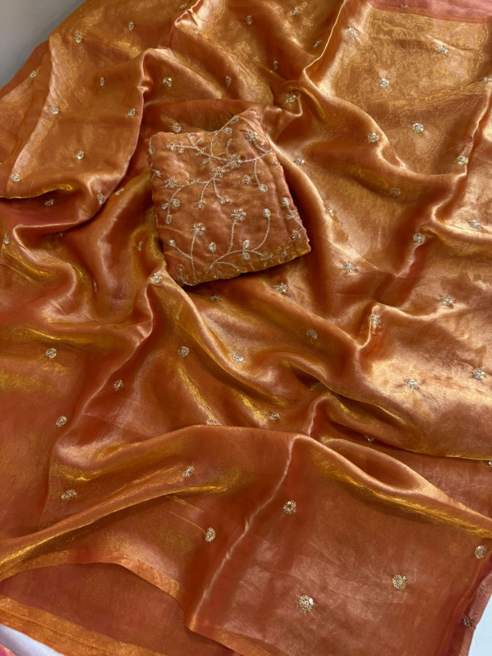 Make a dazzling statement with this Fendy Satin Saree, crafted in luxuriously soft satin fabric and adorned with full-body sequin embroidery for a radiant, head-turning look. The saree is a perfect blend of fluid drape and high-shine glamour, ideal for receptions, cocktail nights, and festive soirées.