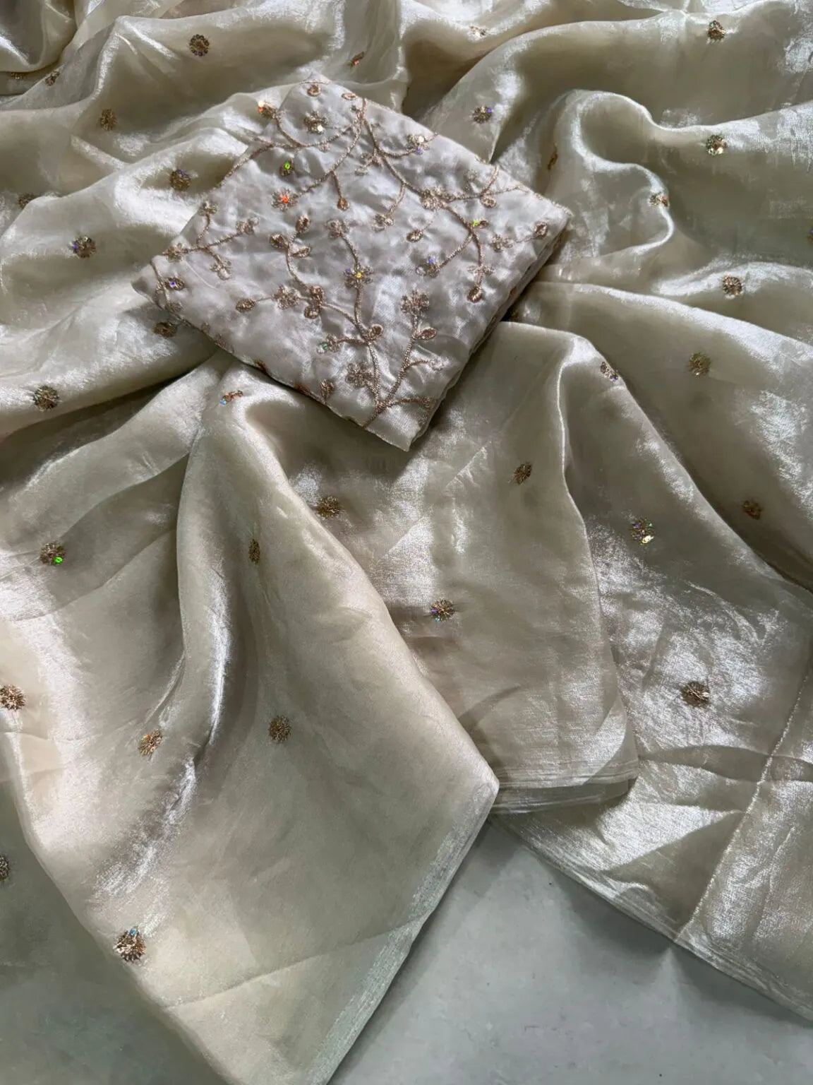 Paired with a matching running blouse piece, also fully embellished with sequin work, this ensemble is a complete partywear stunner.