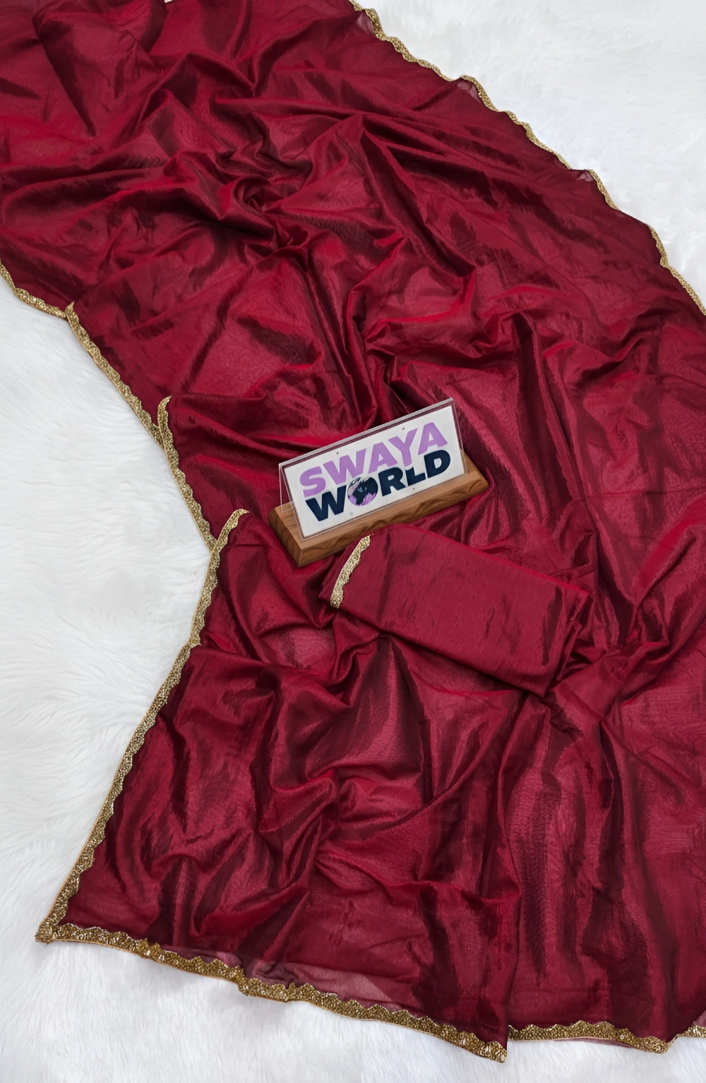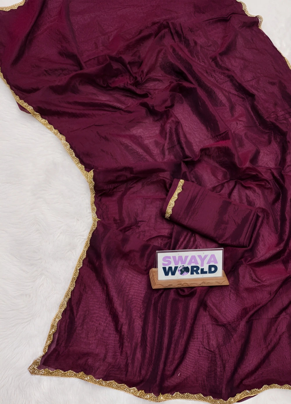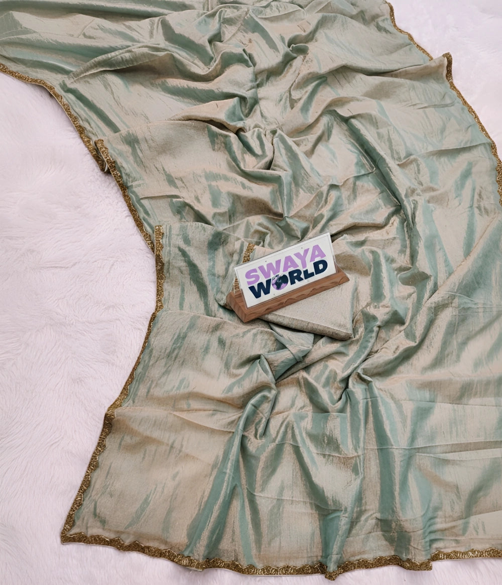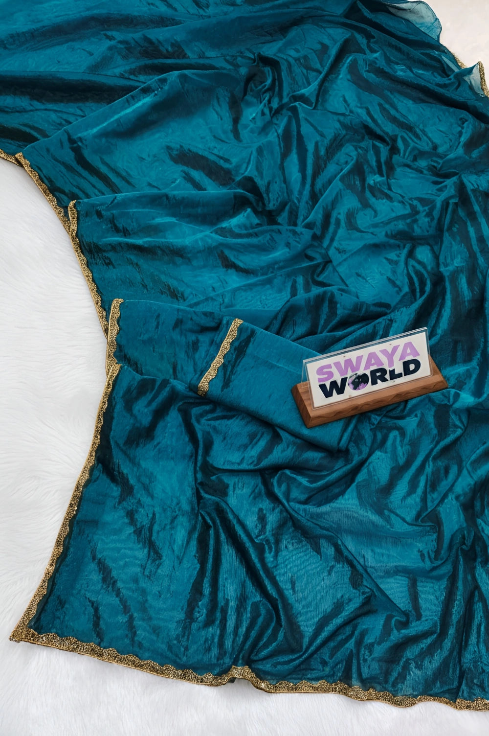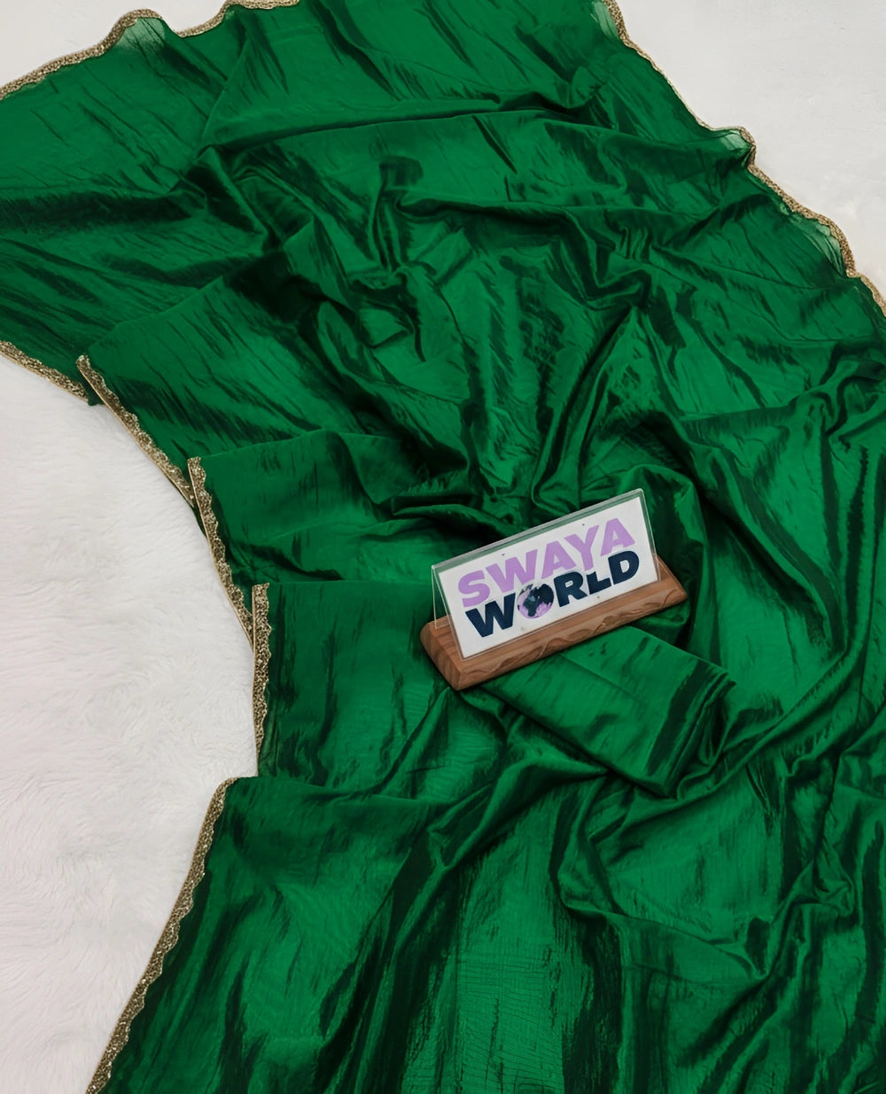 The best way to represent your classy look 🍂 is with this spectacular NC Tonix Crush Saree, crafted from soft, flowy fabric with a subtle shine and elegant texture. The saree features super hit gum lace detailing along the edges, adding a touch of glamour to its lightweight drape.