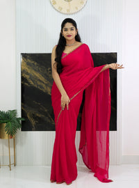 Paired with a matching running blouse piece that includes lace accents, this ensemble is perfect for casual celebrations, festive wear, and everyday elegance. Available in six trending colors, this saree is a must-have for fashion-forward wardrobes.