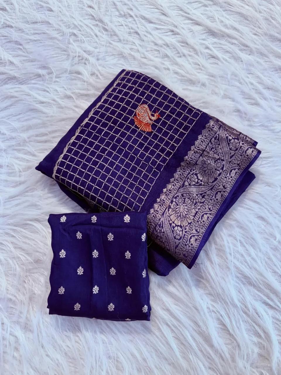 Paired with a viscose butti blouse piece, this ensemble is a complete statement of sophistication and style.